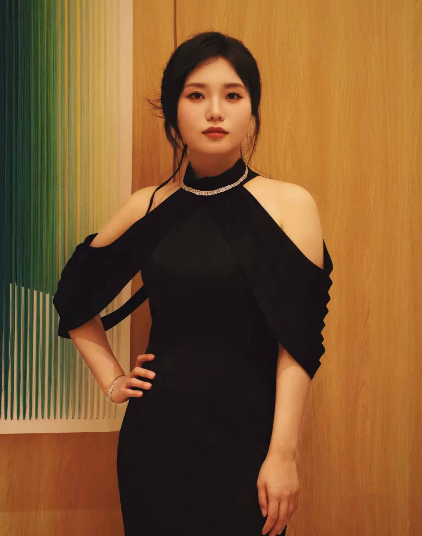 李雪琴穿了露肩的黑色连衣裙,她瘦了太多了、都差点认不出来了。黑色露肩连衣裙,配上珍珠项链,优雅贵气、也有一种强势归来的霸道范。