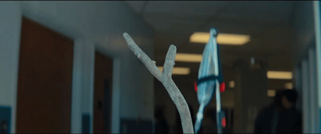 又或者是一个酗酒者喝醉后骑着摩托车从山坡滚下来,令人惊悚的树枝插在了他的眼睛里,旁边还有烦人的护士。这似乎也是道具组最满意的一场戏,他们尽可能把这个树枝做得足够大。