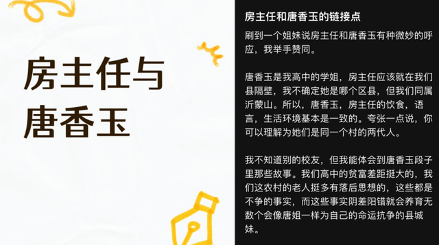 这些女性的故事会激励很多普通用户分享他们自己的人生故事,形成一个更有群像感活人感的讨论场。比如有用户就从县城女孩的角度,发布笔记「房主任与唐香玉的链接点」,说作为他们的同乡,很高兴能看到唐香玉火起来,她们的故事会激励更多县城女孩向上生长,获得了将近9000的点赞。