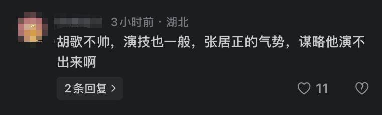 有网友说:“胡歌演的角色都是‘好人带点瑕疵’,但张居正的是‘坏人藏着初心’,这不是一回事。”