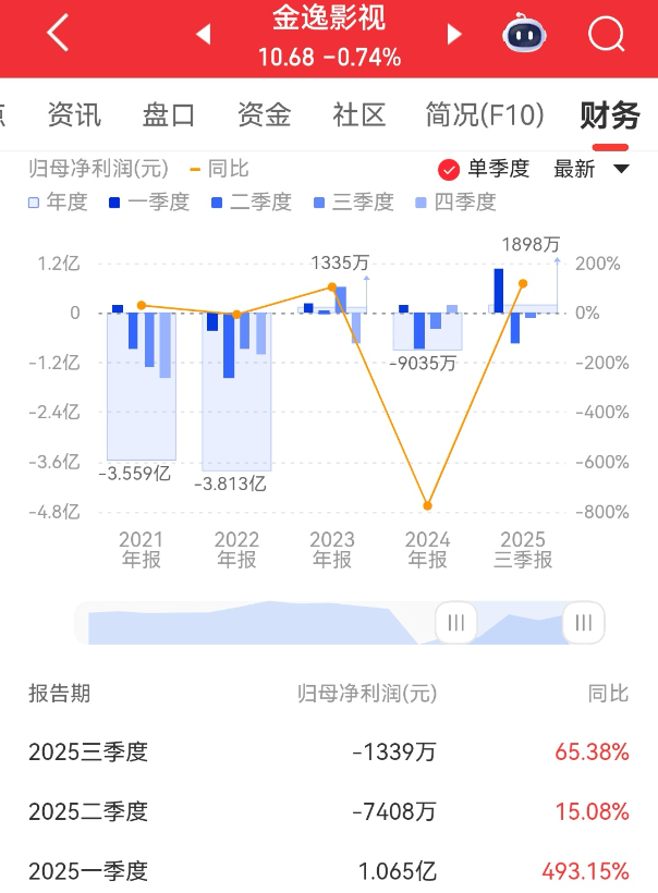 第一季度,因为有《哪吒2》《唐探1900》带火的春节档,影院生意火爆,金逸影视因此盈利。二季度,影市转冷,票房下滑,金逸影视因此亏损。三季度,有暑期档,影市稍回暖,但仍不及预期,金逸影视亏损较二季度降低,但没盈利。