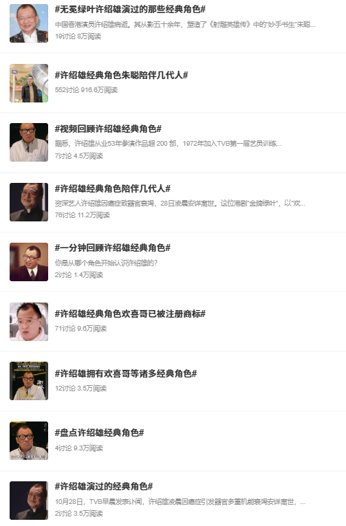 今天,#许绍雄经典角色 话题阅读量已突破3亿。