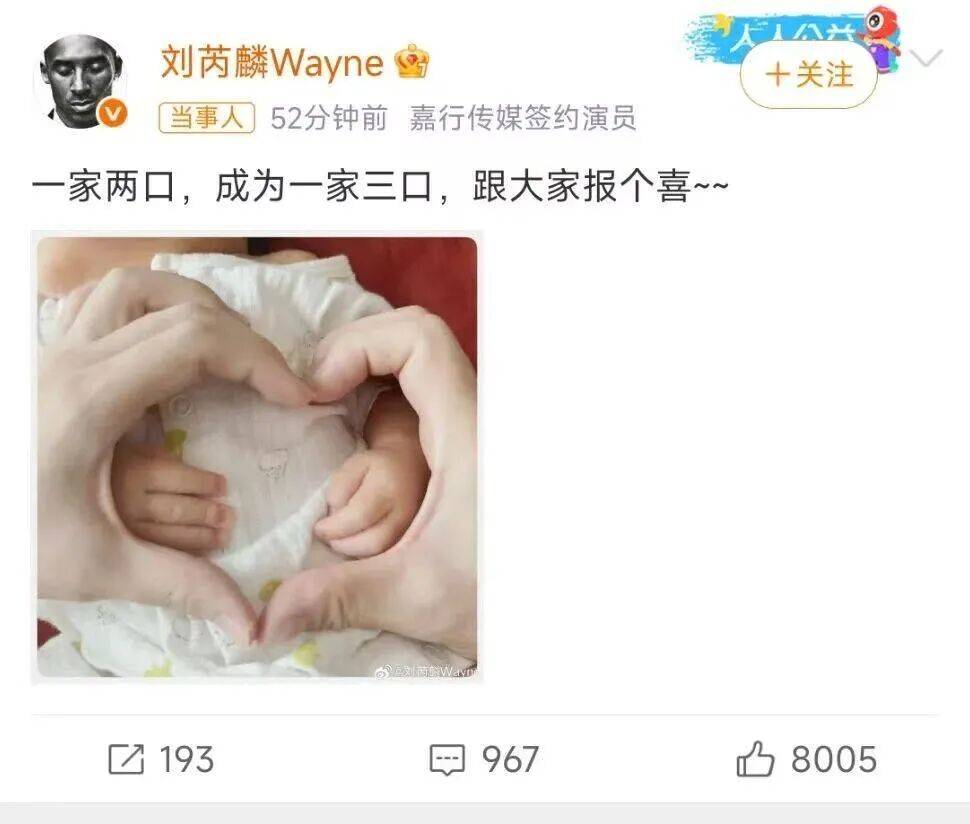 不过倒也正常,因为早在今年7月份的时候,刘芮麟就发博官宣了自己结婚生子。