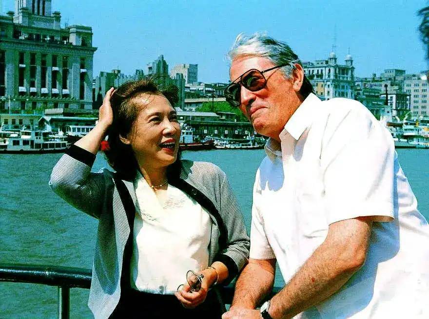 1987年,65岁的秦怡与71岁的美国影星格里高利·派克在上海黄浦江畔的合影。