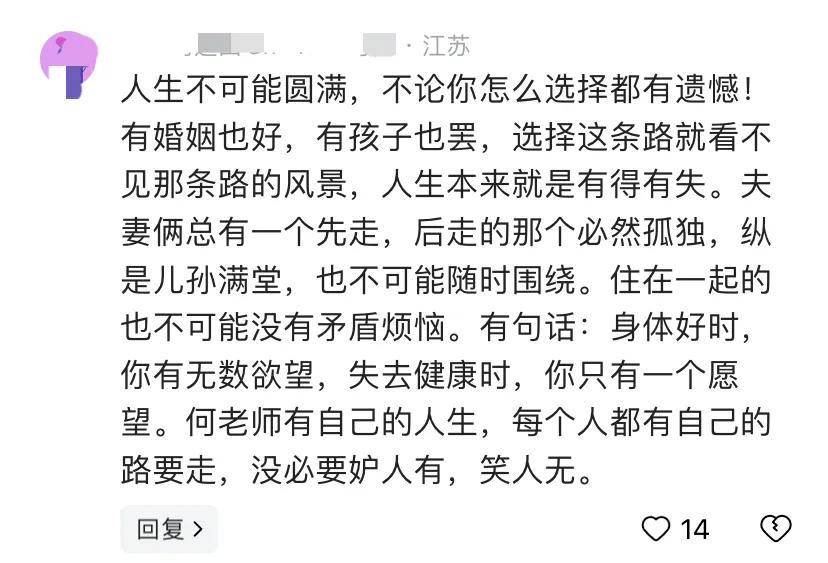 网友“远山”感叹道:人生不可能圆满。另一位网友“小雨”也认为,人生没有十全十美。何炅的故事引发了一个深思的问题:我们在赞美拼命工作的同时,是否忽略了它背后隐匿的巨大代价?