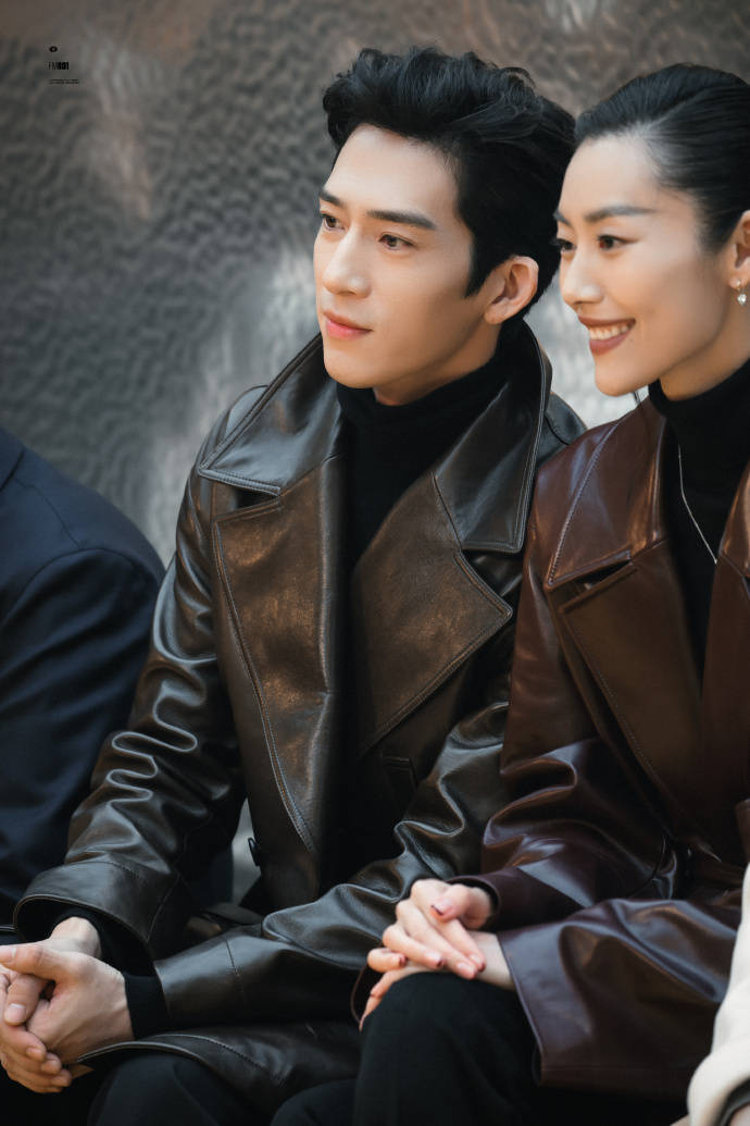 刘雯井柏然秀场同框,刘雯低头浅笑。
