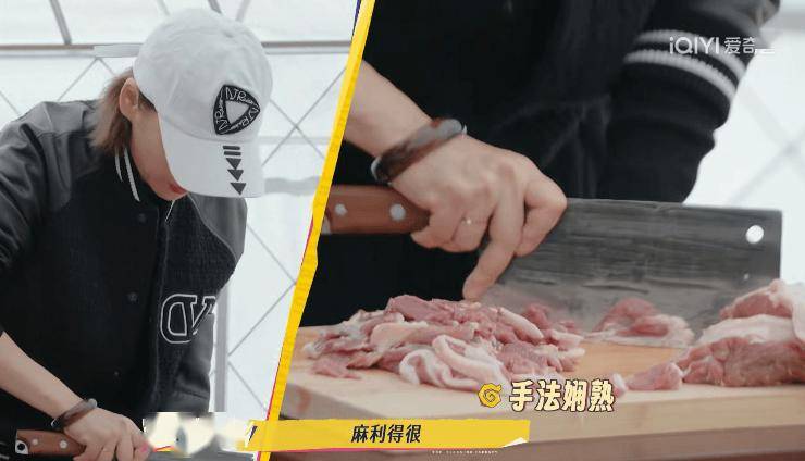 切肉极其熟练,让刘嘉玲都刮目相看了。