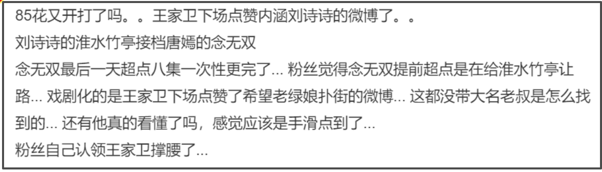 不过王家卫虽然这样说,但之前还闹出过点赞内涵刘诗诗的微博。当时所有人都觉得他是力挺唐嫣,如今再看,可能只是纯爱蛐蛐人。