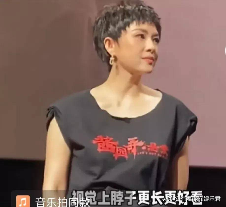 这一次电影活动宣传会上,每个人的T恤衣服都没做改动,唯独她把领口改了,又一次吸睛。
