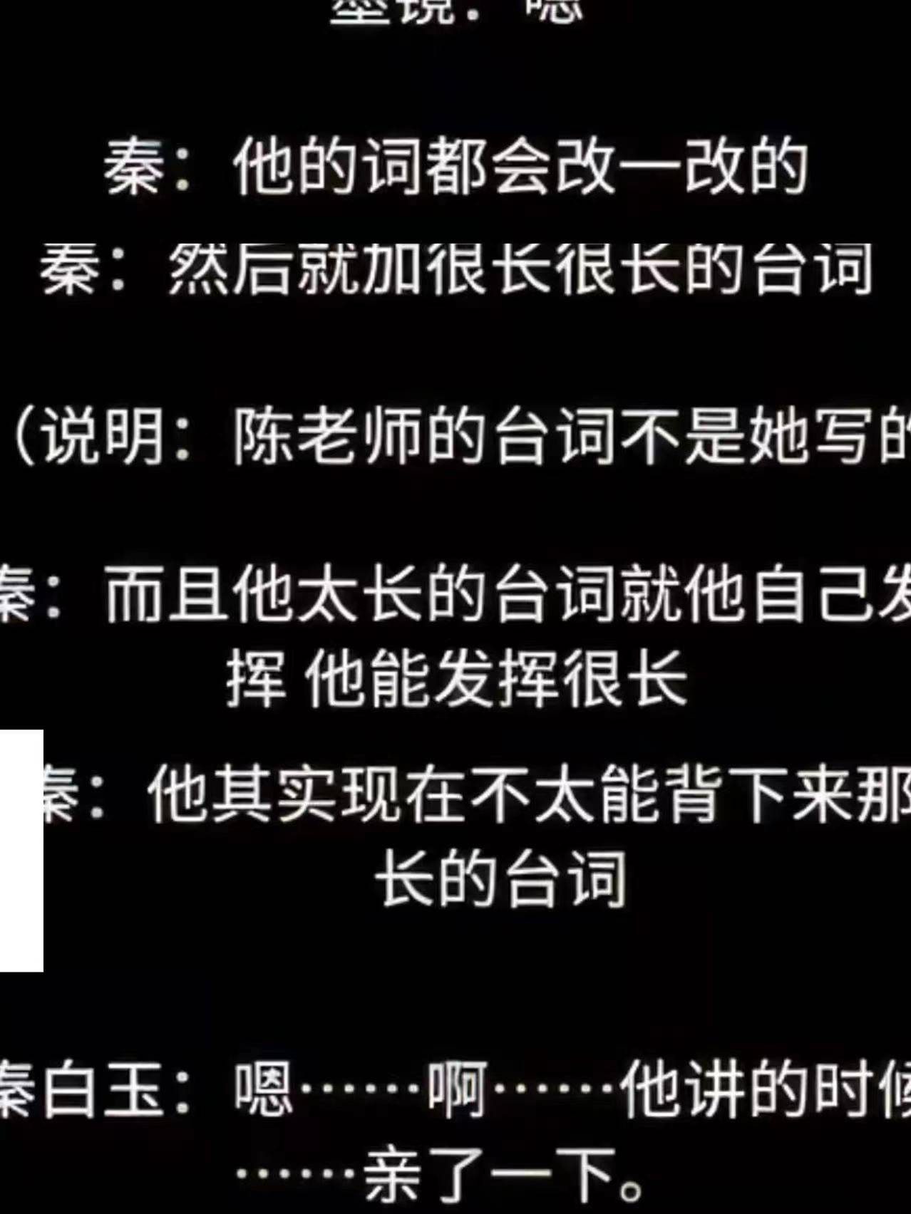 秦雯爆料陈道明在《流金岁月》中修改台词,说了很多不好的,这种态度对待恩人,真的惊掉眼镜。秦雯吐槽陈道明会在《流金岁月》加很多台词,给自己发挥,但年纪大了,又记不住这么多台词云云。她真敢说,陈道明看到会气炸,而且是在王家卫面前吐槽。王家卫为什么说陈道明是阴 阳人,他们也没有说出原因,可能王家卫觉得?