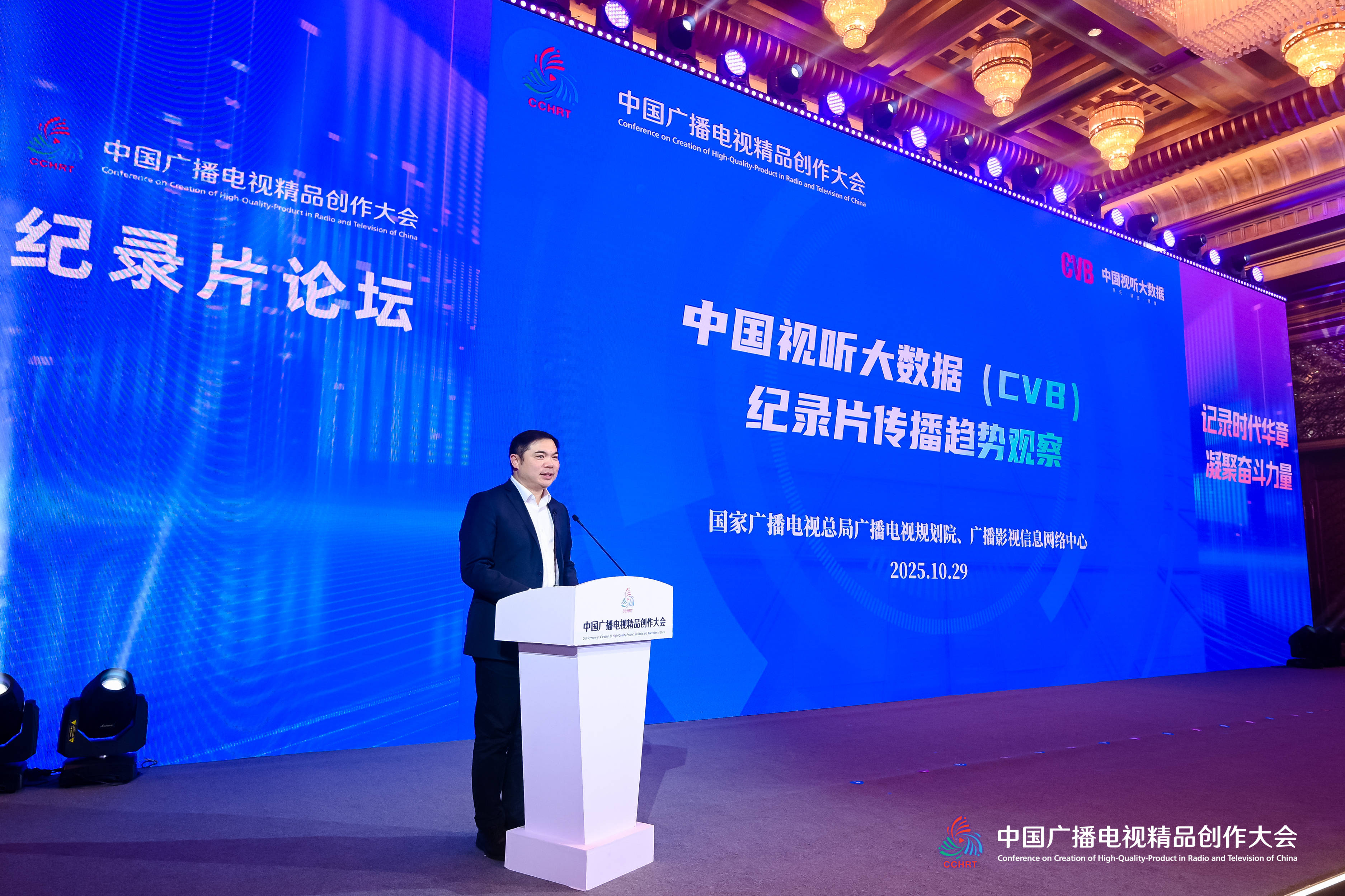 2025年10月29日下午,2025中国广播电视精品创作大会纪录片论坛在京举办。本次论坛由国家广播电视总局宣传司、北京市广播电视局主办,北京广播电视台、腾讯视频承办。论坛以“记录时代华章 凝聚奋斗力量”为主题,立足纪录片的文化根基与时代使命,深入贯彻落实“纪录片创新行动”计划,聚焦“信仰中国、文化中国、行进中国、山河中国、人物中国”五大创作核心方向以及纪录片在内容创作、技术变革、传播与产业层面的全面创新与协同发展,深入探讨如何实现精品纪录片创作与时代同频、与受众共鸣。