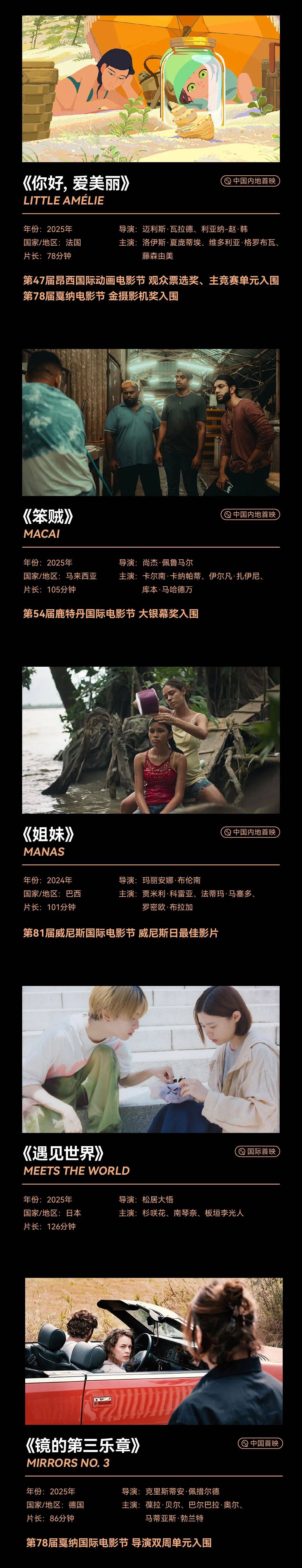 2025年,摄影机依然聚焦于这个复杂而真实的世界,导演们在面对新兴媒介不断冲击的局面下,仍坚持讲述着属于这个时代的迷茫与勇气。电影从未如此贴近生活,也从未如此需要直面生活的真相。银幕即将开启,等候观众纷至沓来。