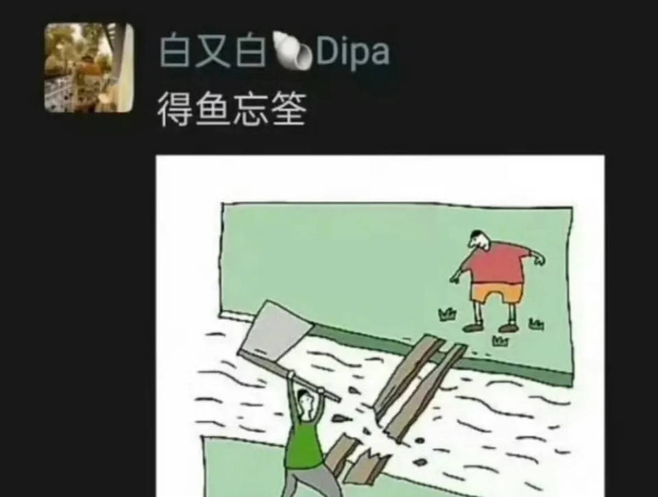 这场风波始于11月3日,白百何在微博发出那句意味深长的"还能这么操作……",配上三个别有深意的表情包。与此同时,她的朋友圈更是直接,更新了"得鱼忘筌"这个成语,还配了"过河拆桥"的漫画。
