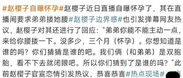 在直播间让大家猜孩子爸爸是谁,然后又让亲弟弟搂她的腰,做出一些亲密的动作。