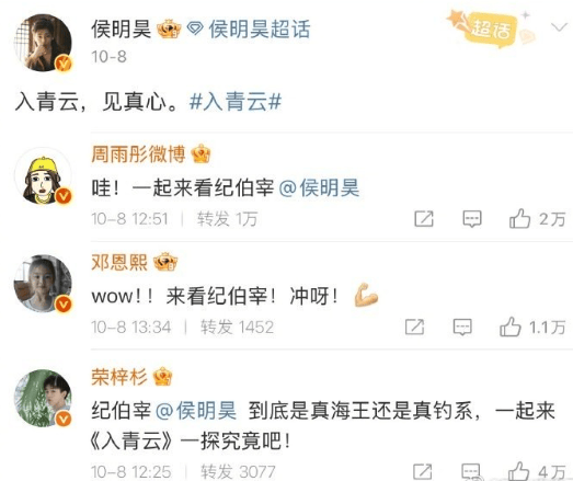 侯明昊的剧,周雨彤、邓恩熙和荣梓杉这三个人帮着转了: