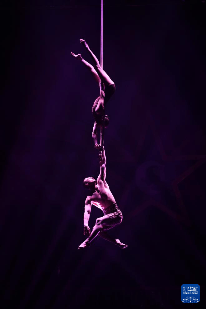 11月1日,广东横琴,演员在第八届中国国际马戏节开幕式上表演。11月1日,第八届中国国际马戏节在广东横琴长隆卡卡剧场开幕。本届马戏节以“世界马戏 汇聚横琴”为主题,汇聚了来自全球的18支顶尖马戏团队,近500名艺术家同台献艺,共享国际最新马戏艺术发展成果。新华社记者 肖恩楠 摄