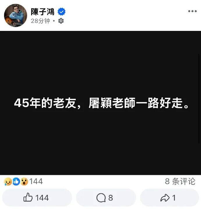 陈子鸿(45年老友):“45年的老友,一路好走。流行的终于成为不朽的。”