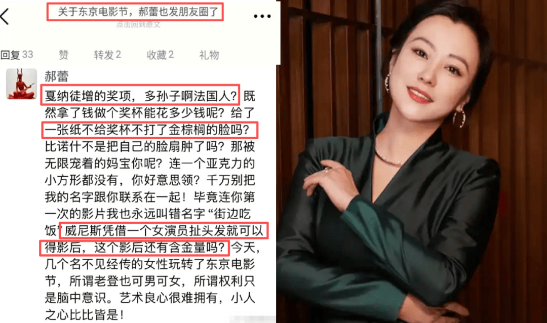 还吐槽东京电影节被 “名不见经传的女性玩转”。