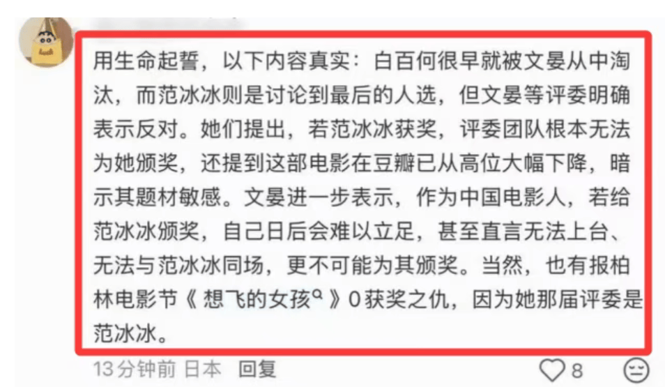 影射评委文晏受资本影响, 导致白百何落选、戏份不多的王传君拿影帝。