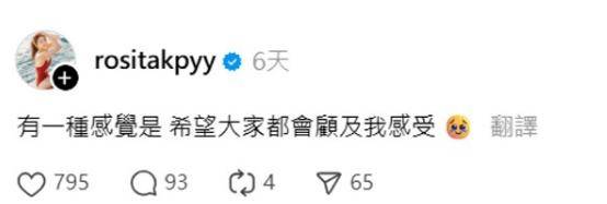 面对负评,郭柏妍日前在社交网发文意有所指:“有一种感觉是希望大家都会顾及我的感受”,暗指希望网友手下留情。