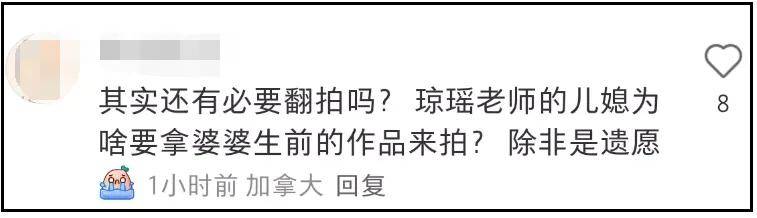 看到这样的低级错误,不少网友纷纷质疑何琇琼,觉得她在消费逝者的遗作,套用IP翻拍就算了,就连制作也这么不上心,完全有理由怀疑她只是代为授权,后期压根撒手不管。