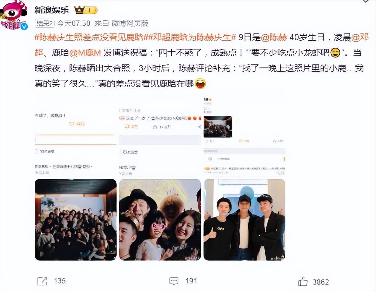 11月9日,陈赫在微博发布四十岁生日聚会大合照,配文“四十 朋友们!”的简短宣告,却因一场意外的“寻人游戏”引爆热搜,合影中,站在右侧边缘阴影处的鹿晗几乎与暗色背景融为一体,成为整张照片最隐秘的彩蛋。陈赫凌晨四点现身评论区自曝:“找了一晚上这照片里的小鹿…我真的笑了很久…头有点痛”,并直接点破乌龙核心:“差点没看见鹿晗在哪”。这场由光线制造的幽默瞬间,让生日祝福秒变全网参与的“找茬”狂欢。