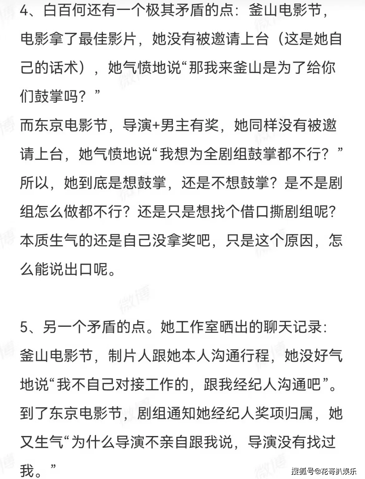 除此之外,剧组还曝光了白百何耍大牌的实锤细节。剧组透露,釜山电影节期间,制片人曾想直接和白百何本人沟通相关事宜,结果她摆起架子,要求“有事联系经纪人”。可到了东京电影节,剧组按照她之前的要求联系经纪人时,她又反过来抱怨“为什么不直接和我本人沟通”,这种前后矛盾的态度,让剧组工作人员苦不堪言。