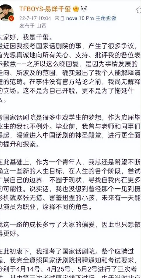 眼看舆论愈演愈烈,易烊千玺本人只好亲自出面回应。
