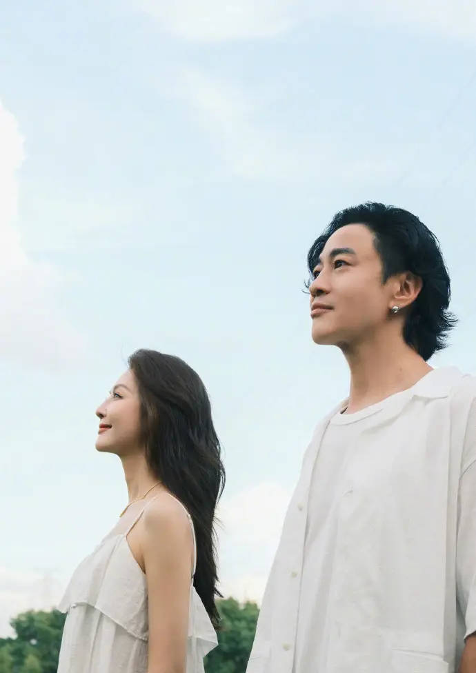 林姵希搂住丈夫何润东,夫妻两人对镜头微笑。