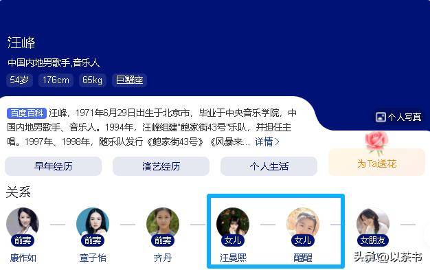 和葛荟婕分手没多久,汪峰又和比他小15岁的康作如领了证,2012年生下了汪璟怡。然而,女儿才8个月大还在哺乳期,他就提出了离婚。