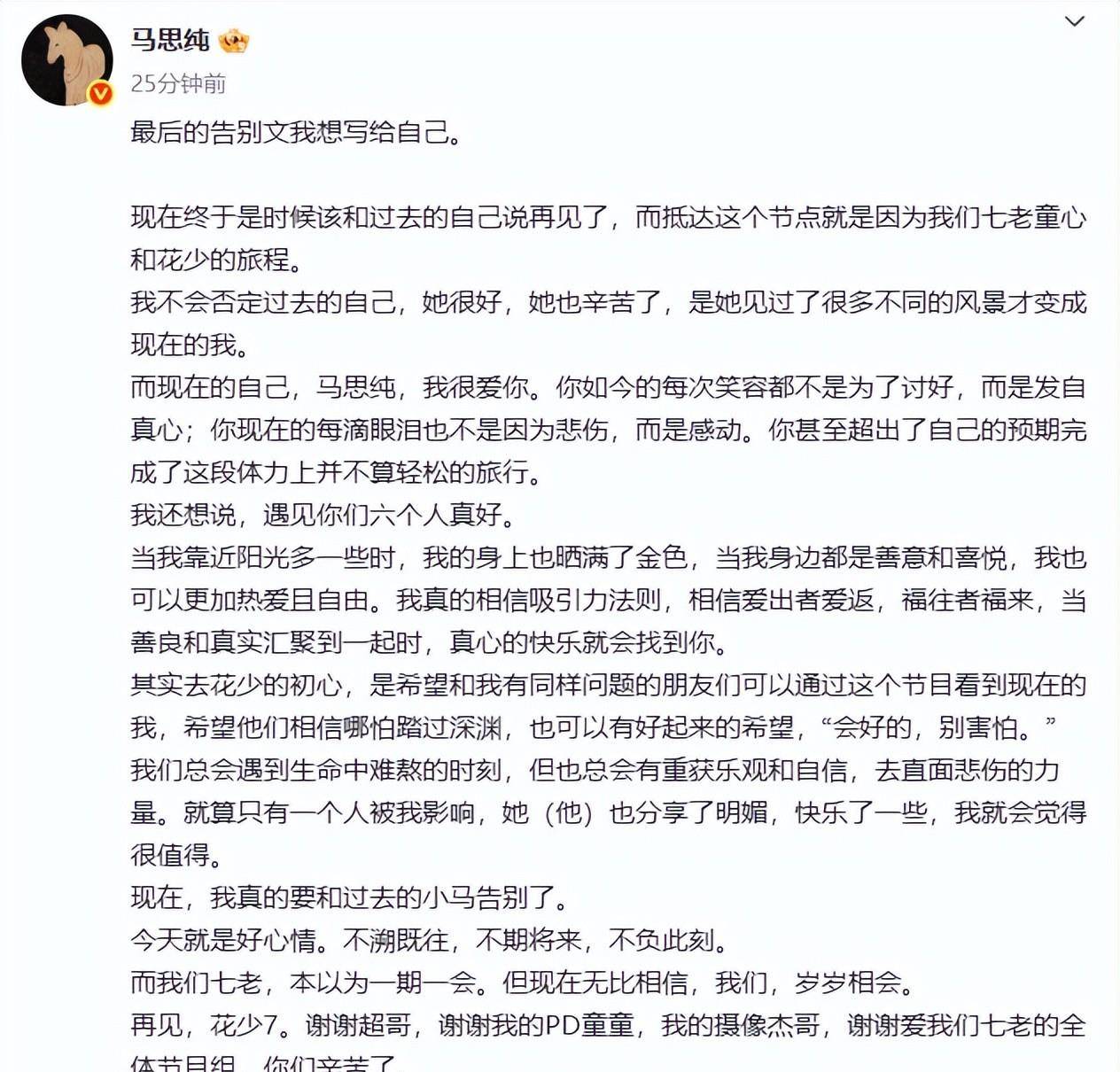 在微博发布收官感言,已成为内娱明星的标准动作。但这次《花少7》的告别盛宴,却意外成为了检验真诚度的试金石。