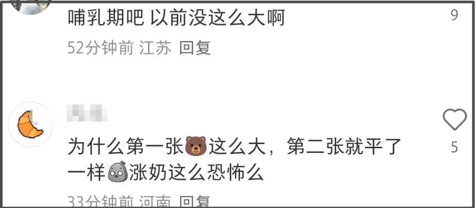 但这样的身材是真实的吗?有网友表示何穗这一看就是妈妈哺乳期的身材,只要母乳喂养就会这样。至于为什么会出现一张胸部雄伟一张扁平,可能是因为哺乳期涨奶因素。由此,也说明何穗坚持了母乳喂养,这在明星当中还是较为稀少,多少女星为了事业不是亲喂。