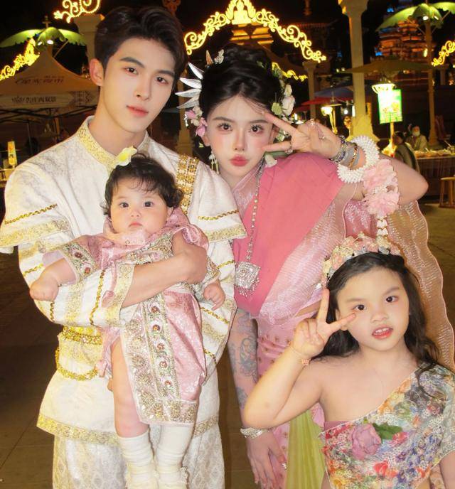 要知道,她前段时间刚在西双版纳晒过一家四口的民族风合照。