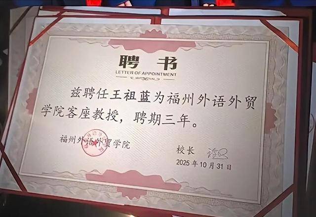 王祖蓝作为大众皆知的人气明星,最近竟然接过了客座教授的聘书,