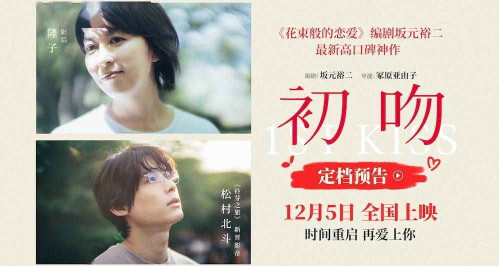 2025年日本本土真人爱情电影票房冠军《初吻》官宣定档12月5日,同时发布定档预告及海报。故事讲述了步入婚姻十五年的砚柑奈面对爱的遗憾,意外穿越到过去,与年轻的丈夫重逢,为了拯救已逝去的丈夫她会怎么做呢?本片是《花束般的恋爱》编剧坂元裕二最新高口碑神作,由冢原亚由子执导,松隆子、松村北斗等实力派演员主演,自日本上映以来便掀起轰动,口碑席卷各大社交平台,豆瓣评分高达8.5,刷新近四年日本真人爱情片最高纪录。
