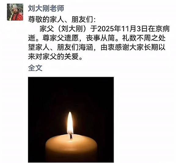 曝光的讣告说,刘大刚是因为生病去世的,真不幸在3号走了。至于后面的事情,会按照刘大刚生前的遗愿,简单处理。