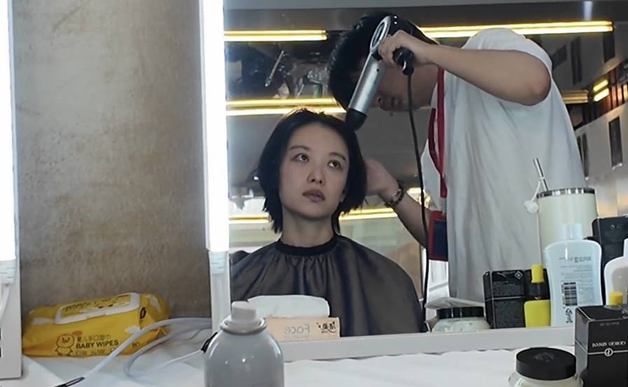 搜狐娱乐讯 11月12日,工作室分享了倪妮为了角色剪短发的视频。图中,她和工作人员讨论剧情,十分敬业。