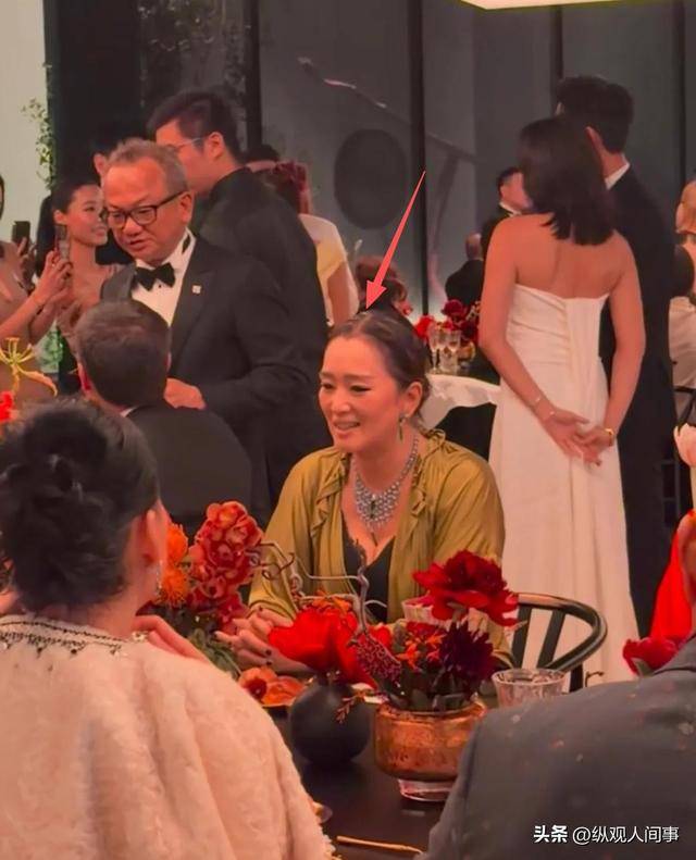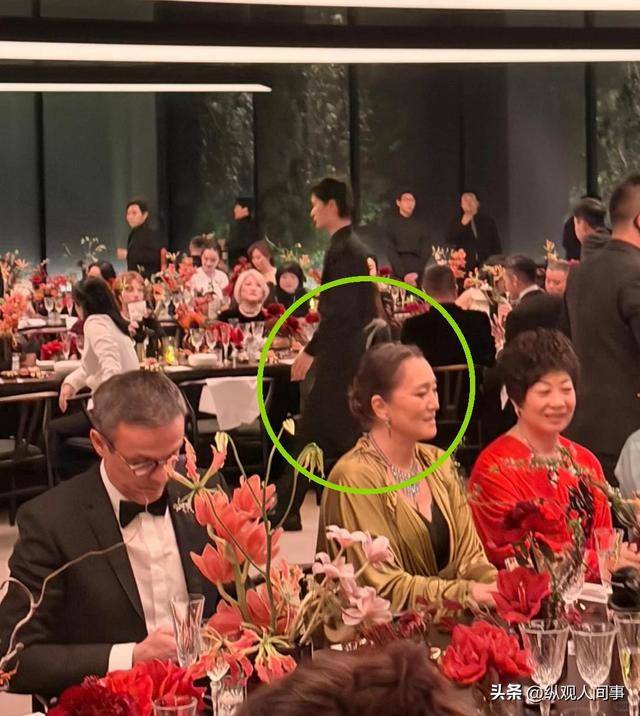 巩俐这身墨绿色深V套装一出场就炸锅,59岁还敢把领口开到肚脐,脖子上鸽子蛋项链闪到曝光。