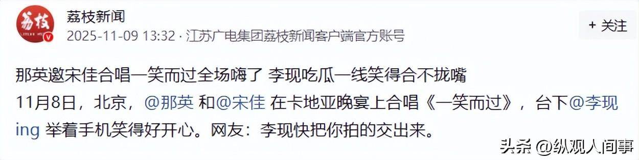 那英突然拽宋佳上台合唱,没彩排居然把《一笑而过》唱成大型KTV现场,台下李现笑到露牙床,白敬亭直接坐沙发靠背上当气氛组。
