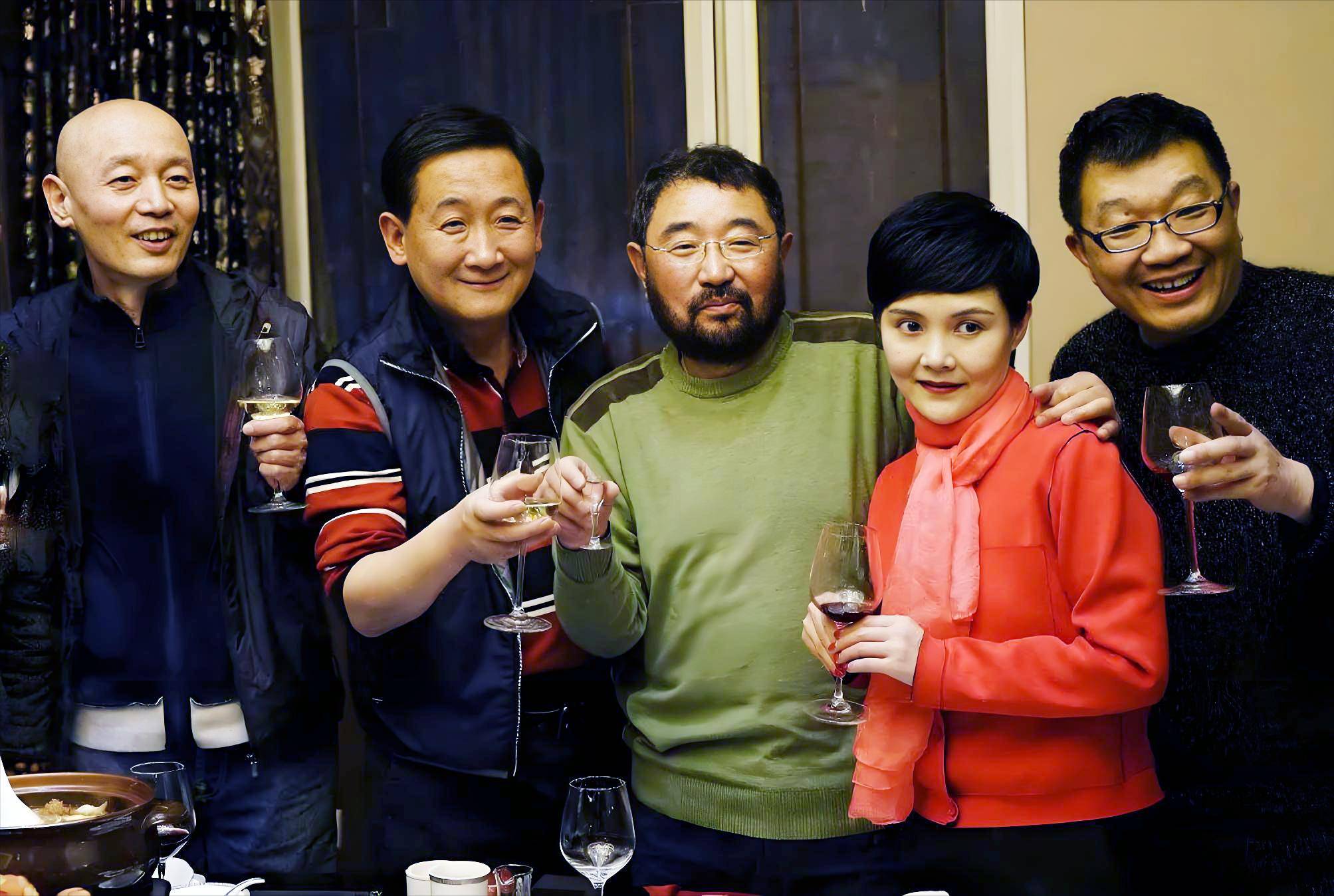梁天(左二)与朋友合影