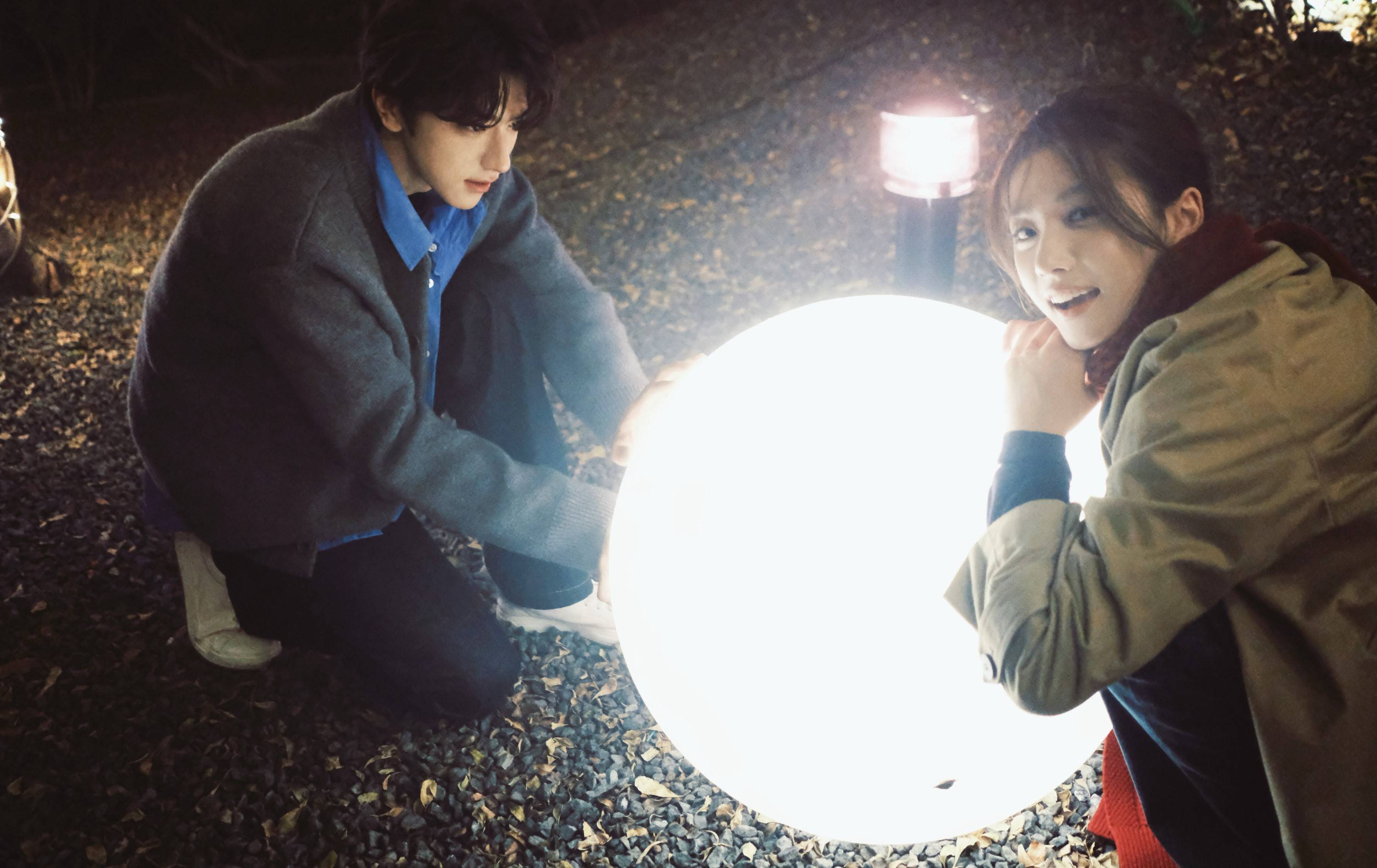 卢昱晓抱着地上的“月亮”,表情呆萌。