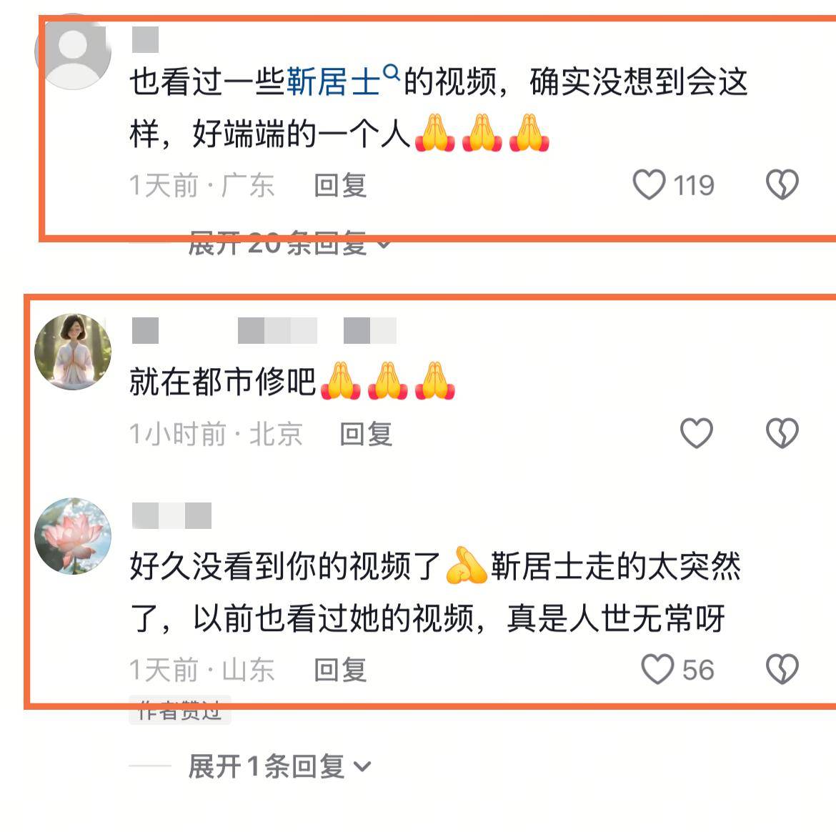 11月11号,有一位从事修行的博主透露悲痛消息,来自知名修行“圣地”终南山的居士靳居士去世,从其视频账号上可以发现,她标注的年龄为59岁。
