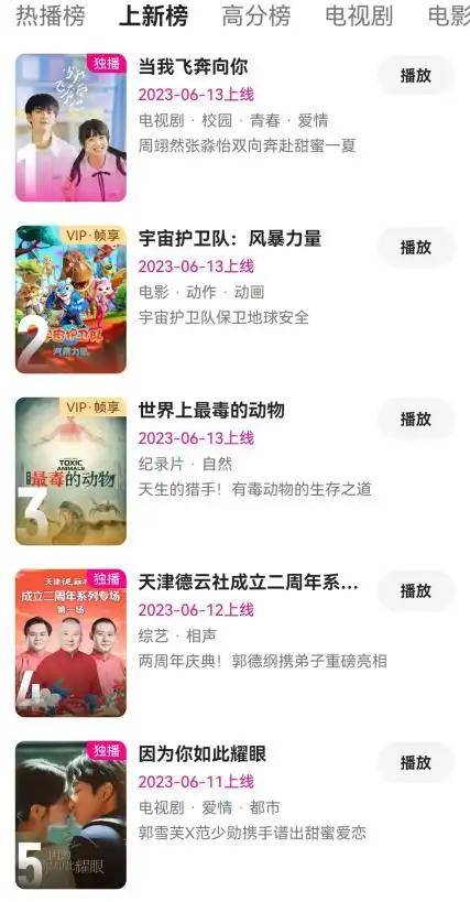 然而,《玫瑰故事》没等来,某酷的《当我飞奔向你》先等到了,这是都市与校园爱情题材的剧集,这部剧存在一定看点,上线仅仅1天,热度就攀升到平台上新榜首位,其火爆程度由此能够想象得知 。