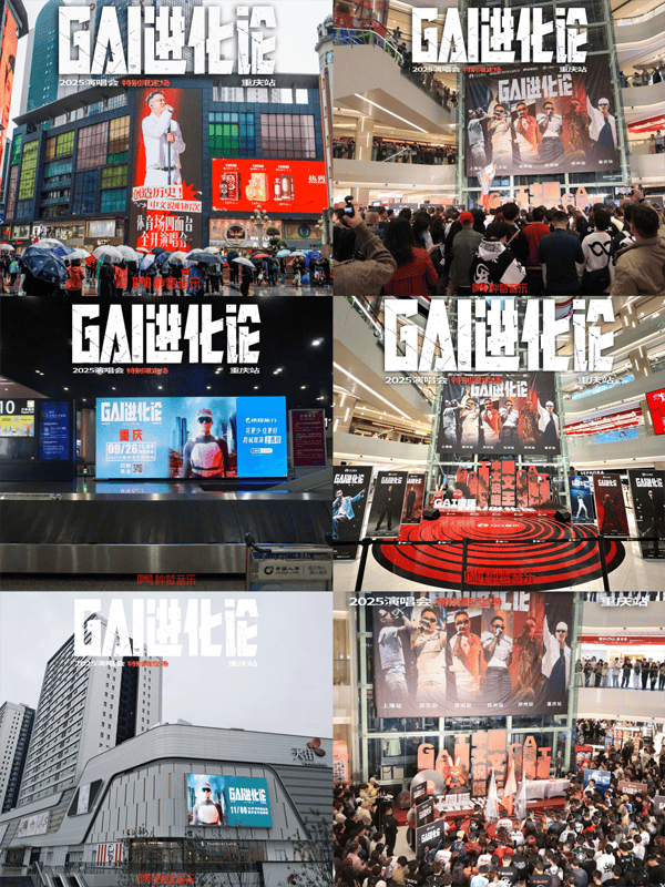 此前,《GAI进化论》巡演在2024至2025年间已走过十站万人体育馆,场场爆满,积累下超高口碑,为这次体育场级别的突破奠定坚实基础。从万人体育馆到五万人体育场,GAI用一场场登峰造极的进化演出展现着内在的巨大能量,《GAI进化论》体育场演唱会门票两次开票全部秒售罄,售票后官宣了此次的演出嘉宾有王鹤棣、C-BLOCK(盛宇、刘聪、功夫胖)、布瑞吉、威尔,强大阵容令歌迷无比惊喜,高呼票价超值!开演前夕重庆站GAI痛楼前人山人海,粉丝提前开唱狂欢,演出过程中#GAI演唱会##GAI体育场统治级上座率##GAI的嘉宾是王鹤棣#等话题冲上微博热搜,歌迷表示“种种迹象显示,这个GAI周延,越大的舞台表现越好,体育场的声场更开阔,效果比体育馆更好!”粉丝用实际行动证明了GAI的超强票房号召力,也用数据证明了中文说唱具备支撑大型商业演唱会的潜力。GAI则用一场超越性的演出证明:中文说唱已经进入全新的体育场时代。