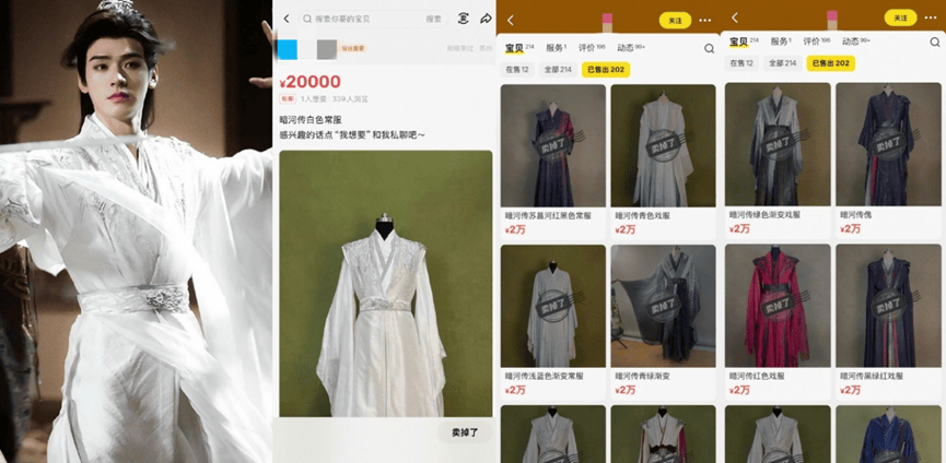 彼时,这种运营模式更多的是作为演员与粉丝互动的一种方式。但伴随着行业持续推开IP玩法、寻求更多元收益,戏服售卖逐渐成为一门真正的生意。