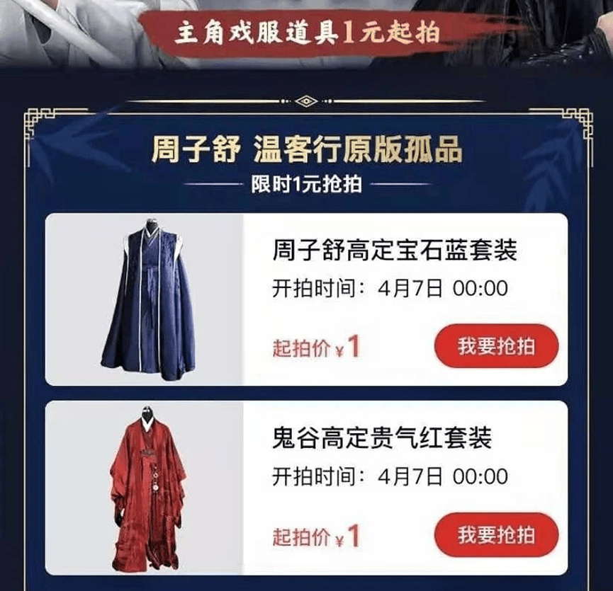 如今《暗河传》以定价售卖的方式处理戏服,进一步规避了拍卖存在的高溢价争议,也代表着类似操作进一步正规化。