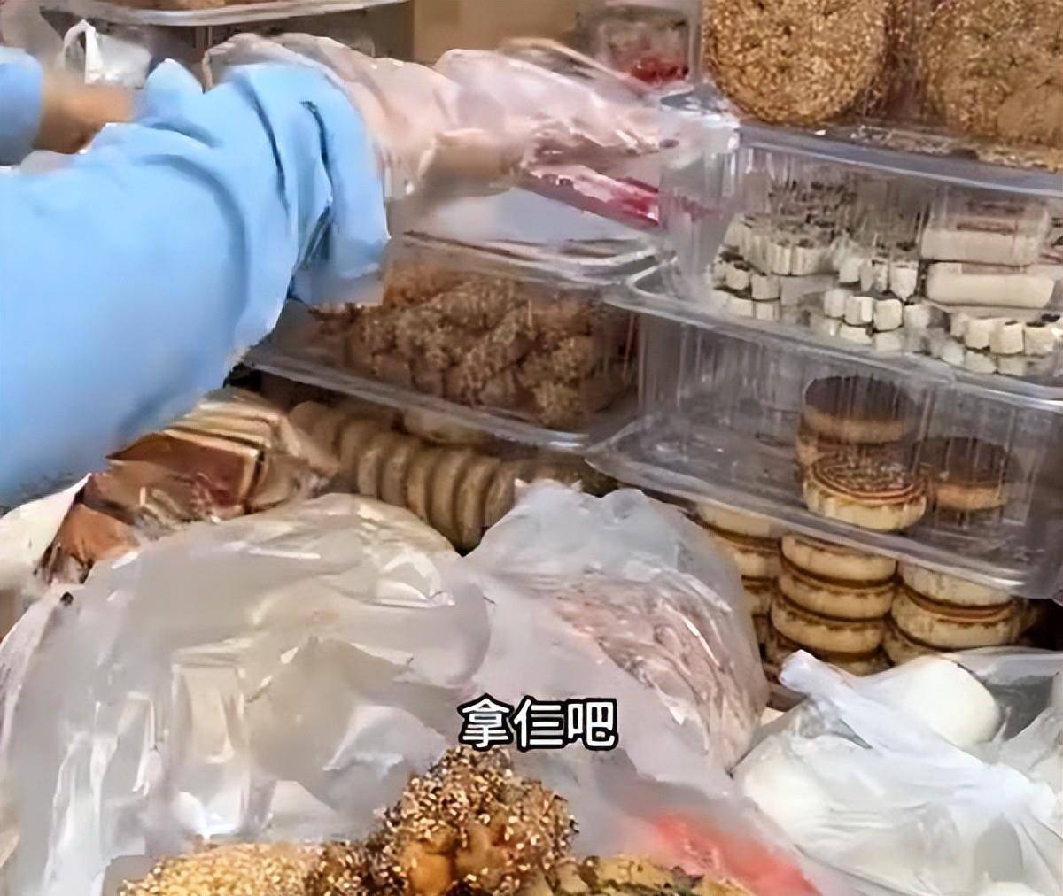 每次老人问她买点心,她都会在称完后,再从盒子里夹一把碎掉的点心放进袋子里。