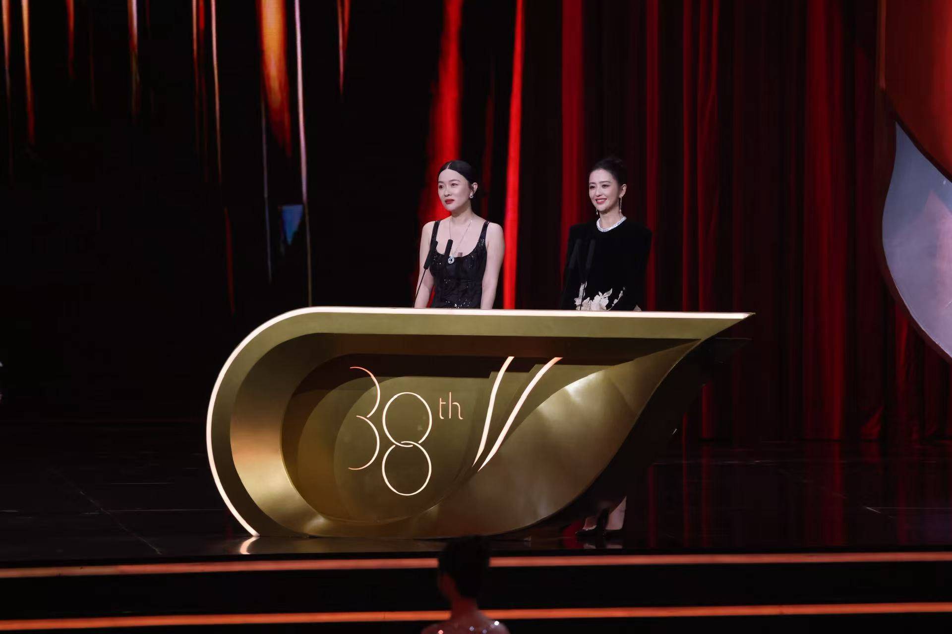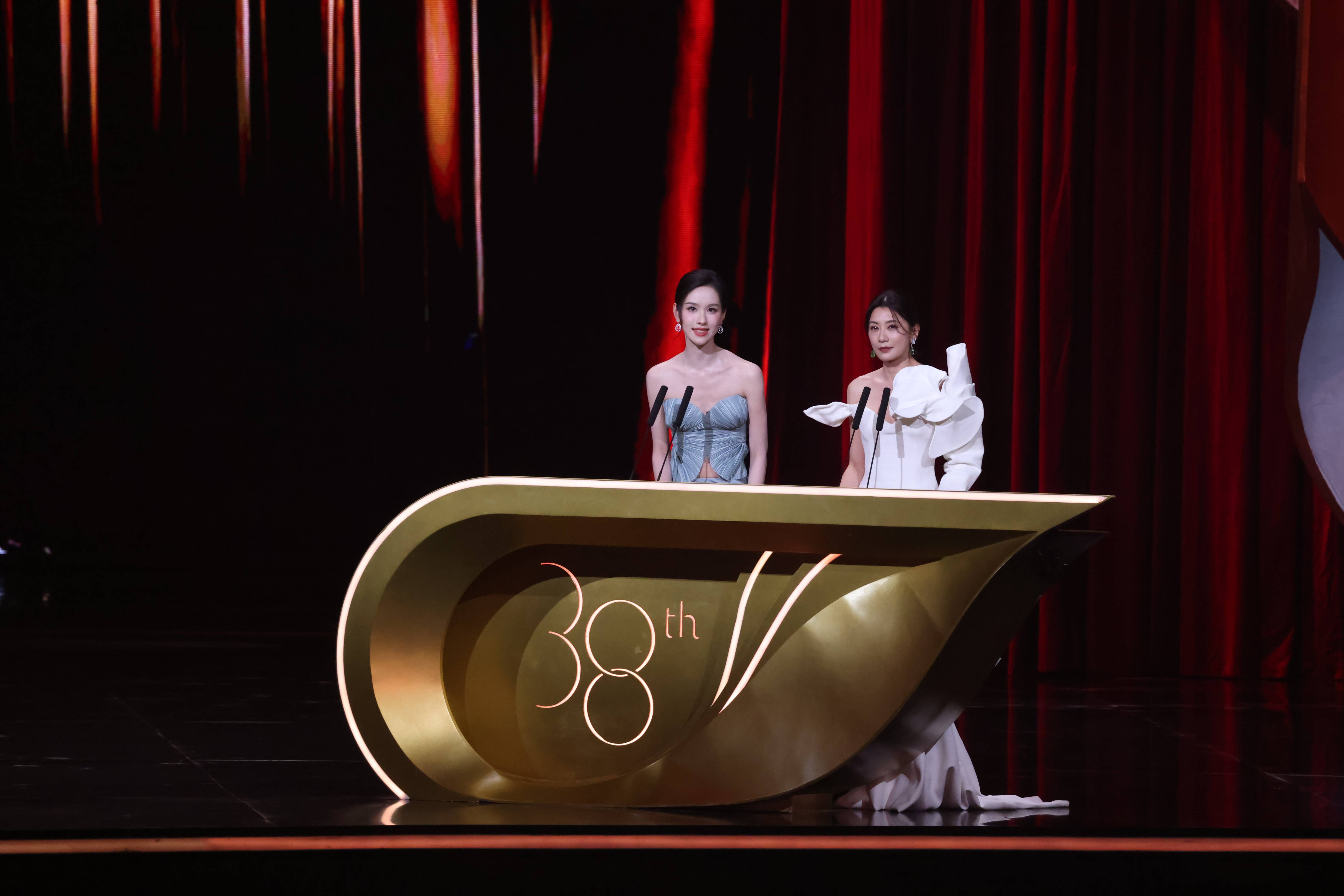 陈都灵、贾静雯同台亮相金鸡奖颁奖典礼。