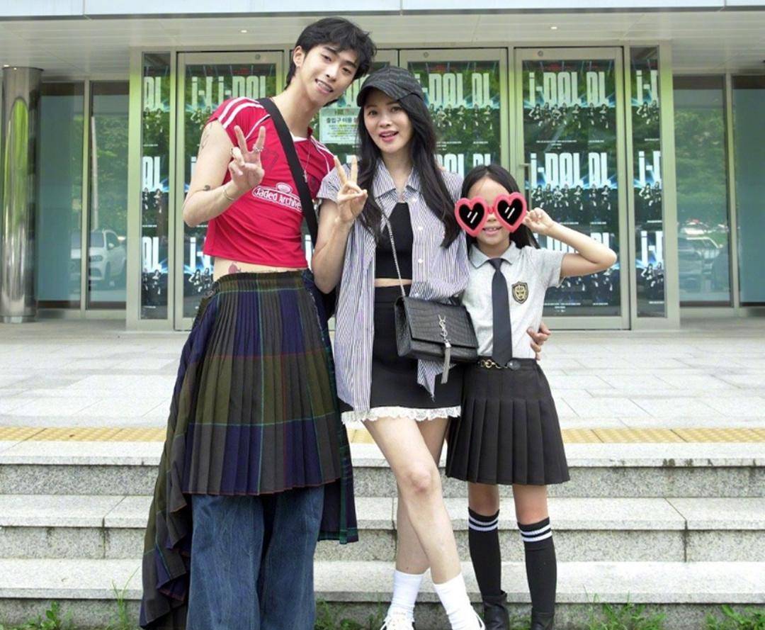 路人镜头下,恩利一身潮装,眉眼神态像极了妈妈伊能静,清冷气质又继承了爸爸庾澄庆的音乐基因!这颜值+才华的配置,不出道都说不过去!