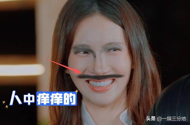 结果她给金晨在人中的地方竖着画了一道黑胡子,像是日本大佐的样子。